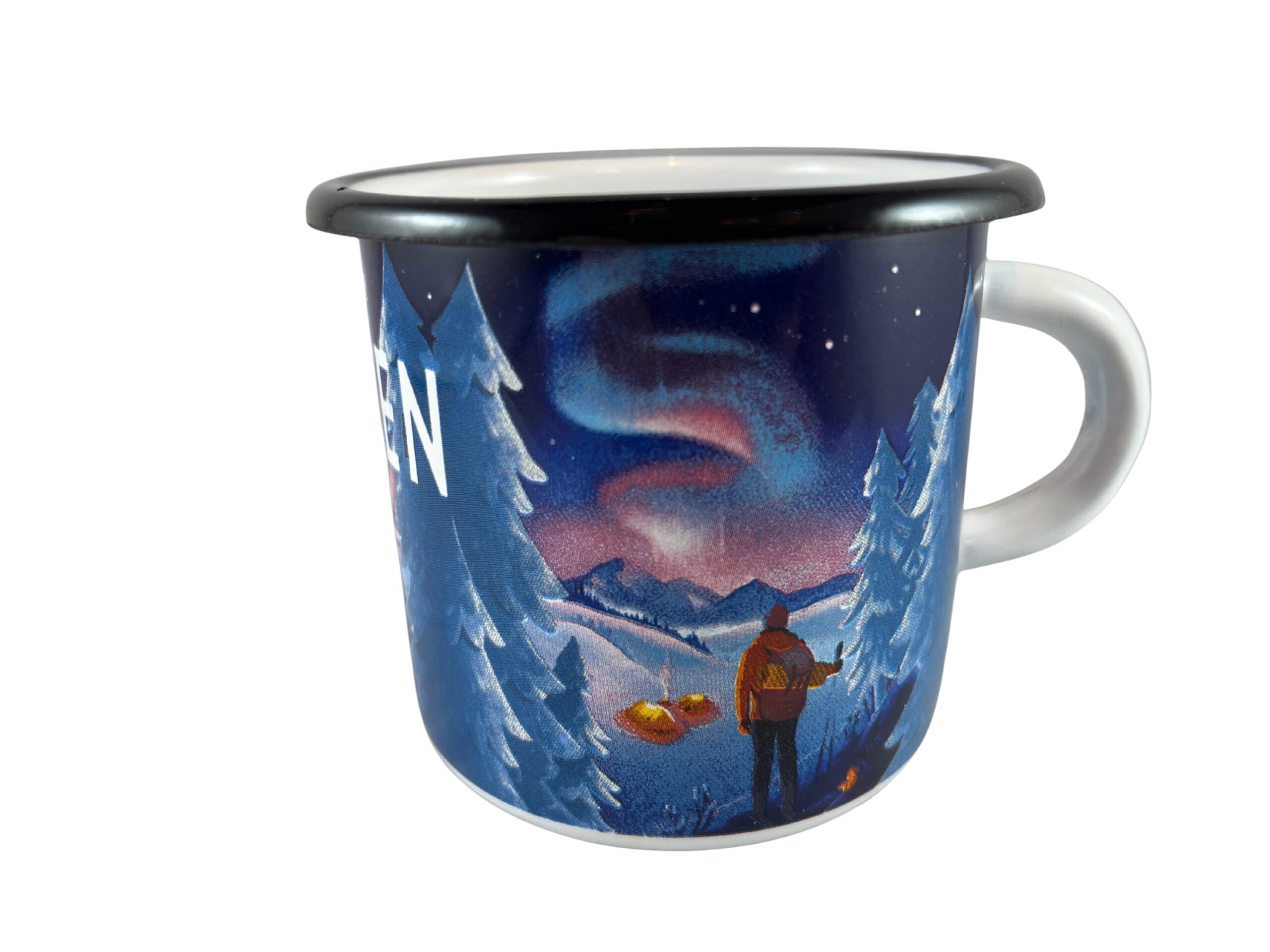 Celebrate the Swedish Northern Lights with this classic enamel mug!